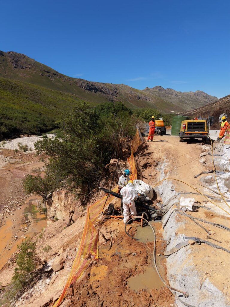 The unit is currently hard at work on a jobsite in the Franschhoek area of the Western Cape, where it is being used to install T40 self-drilling anchors (Hollow Bars). The MR-A 120 continues to deliver exceptional performance, even in demanding ground conditions.